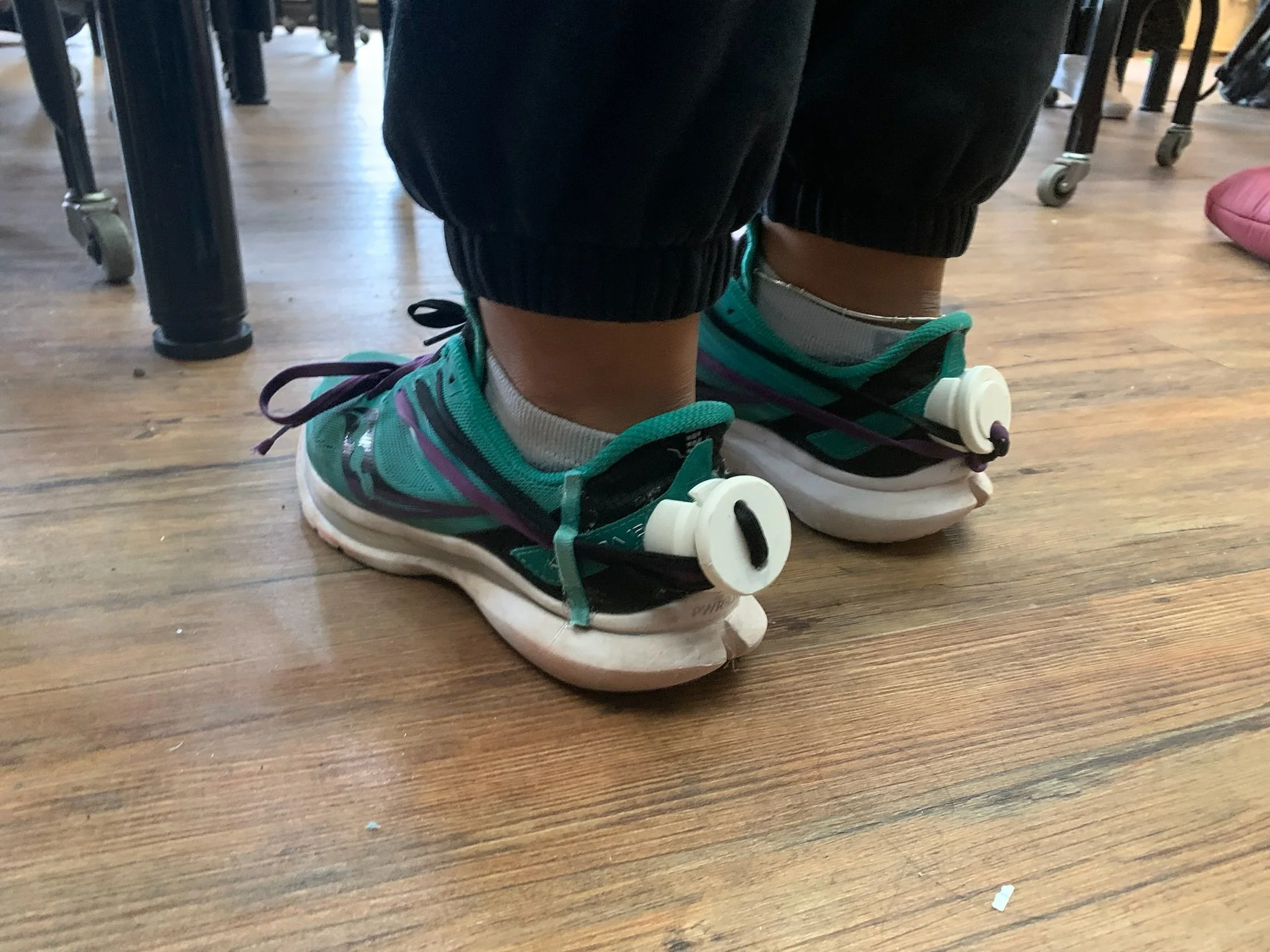 To start off this process, the team wanted to test the different accessibility mechanisms to see which one(s) would be the best. Three sneakers were modified by cutting off the sole and adding a vertical cut to the heel to accommodate for any sized foot. Pipe cleaners were then added to the bottom and back in a way that they could be tightened around the tester's shoe.